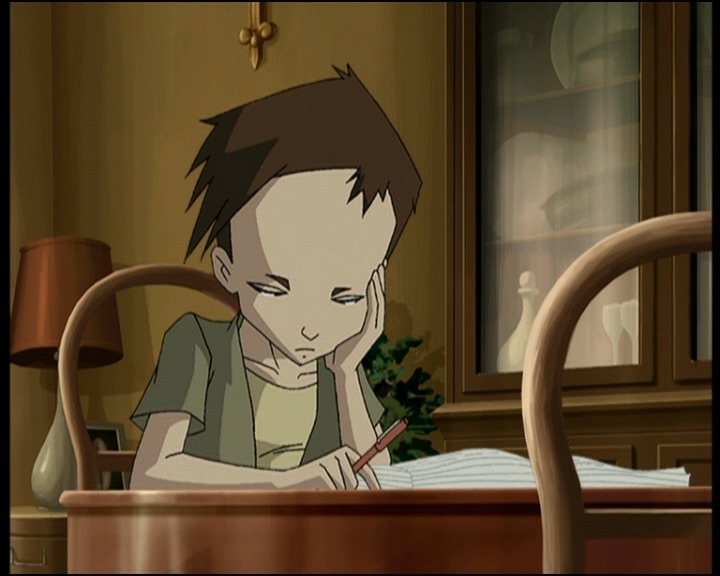 At the beginning of the series, Ulrich, a year 8 student, is pretty much what you may call a bad student: his grades are pretty low and close to being unsatisfactory, in spite of some efforts that we can witness. Even though he sometimes studies for an important test, this young man can't help it: he really doesn't care about lessons and would rather isolate himself and stare out the window... He manages a shy average of 73/100, which makes his parents quite resentful, so they make him go through private lessons (episode 3 “Holiday in the Fog”).