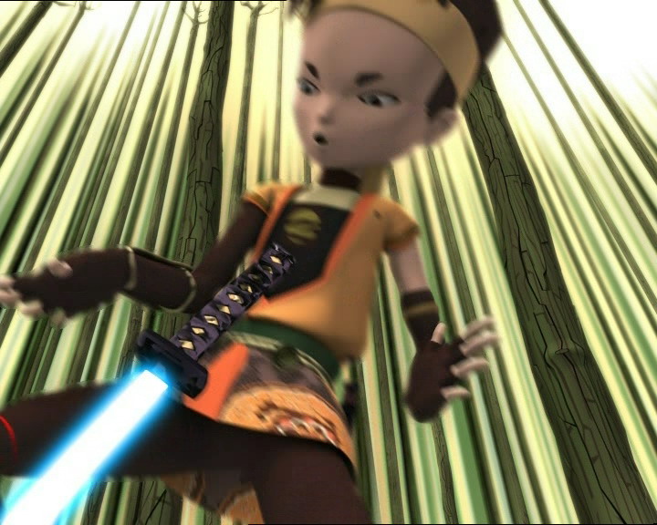 Ulrich puts Kiwi in one of the scanners but Odd accidentally switches places with his dog: Jeremy, who does not know about this, sends his new classmate to Lyoko! Enthusiastic about the perspective of this new experience, Ulrich also rushes into a scanner to be virtualised. He lands in a virtual forest, and is dressed like a samurai warrior equipped with a long sword.